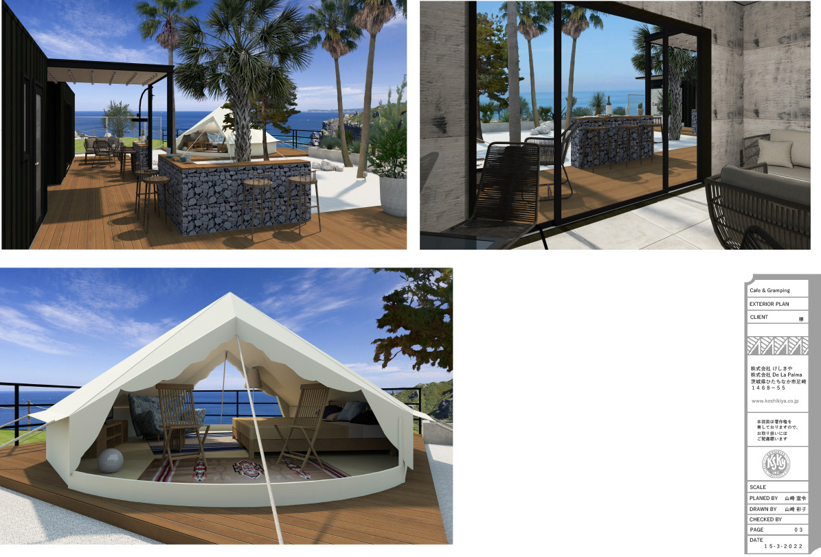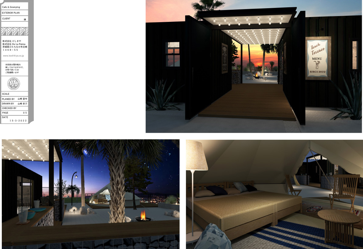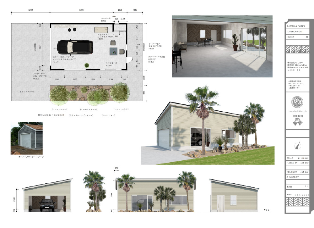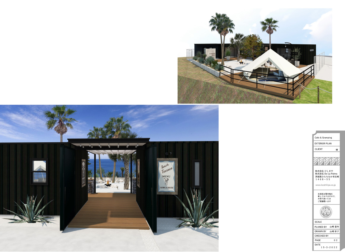 けしきやは、ひたちなか市と水戸市にお店を構えています。ひたちなかにはコンテナハウスの本社オフィス、木造ガレージとアメリカンガレージ、またたくさんのヤシ、アガベ他、ガーデンデザインに色を添える愉快な植物の在庫を揃えています。水戸展示場には巨大なヤシの木がそびえ、ガレージベースのオフィス、レアな植物とさまざまな石を使ったロックガーデンが並び、塊根植物の店頭販売も行っております。まず最初の打合せには、いずれか都合の良い方にお越しいただくか、ご相談内容によっては現場に伺わせていただく場合もあります。