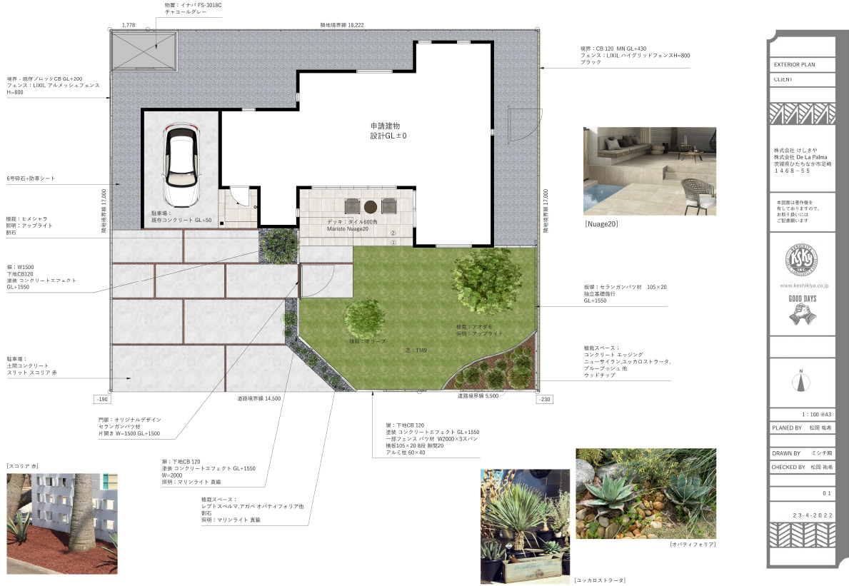 店舗の外構プランの依頼も多くあります。ターゲット層は誰なのか、どんなお客さまに来て欲しいのか、住宅、インテリアだけではありません。外構、エクステリアだって、協力できることはたくさんあるはずなのです。つまりはこの時点でのお客様へのヒアリングがどれだけ大切か、ということです。