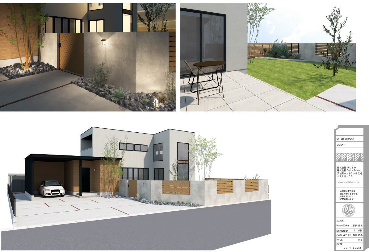 「思った通り!」「そう来たか!」「ちょっとイメージが….」「金額が…(泣)」反応はさまざまですが、いかなる反応でも「外構の打合せって楽しいんだな」と思っていただきたいのです。そして私たちは諦めません。外構工事は高額かもしれません。ですが、お互いの理解のもとに矛盾点が解消され、自分の庭がこうなるのならば、この金額を庭に掛けることができるのではないか、そんな結論を出していただくために、プランの追加、変更、削除を繰り返しいたします。